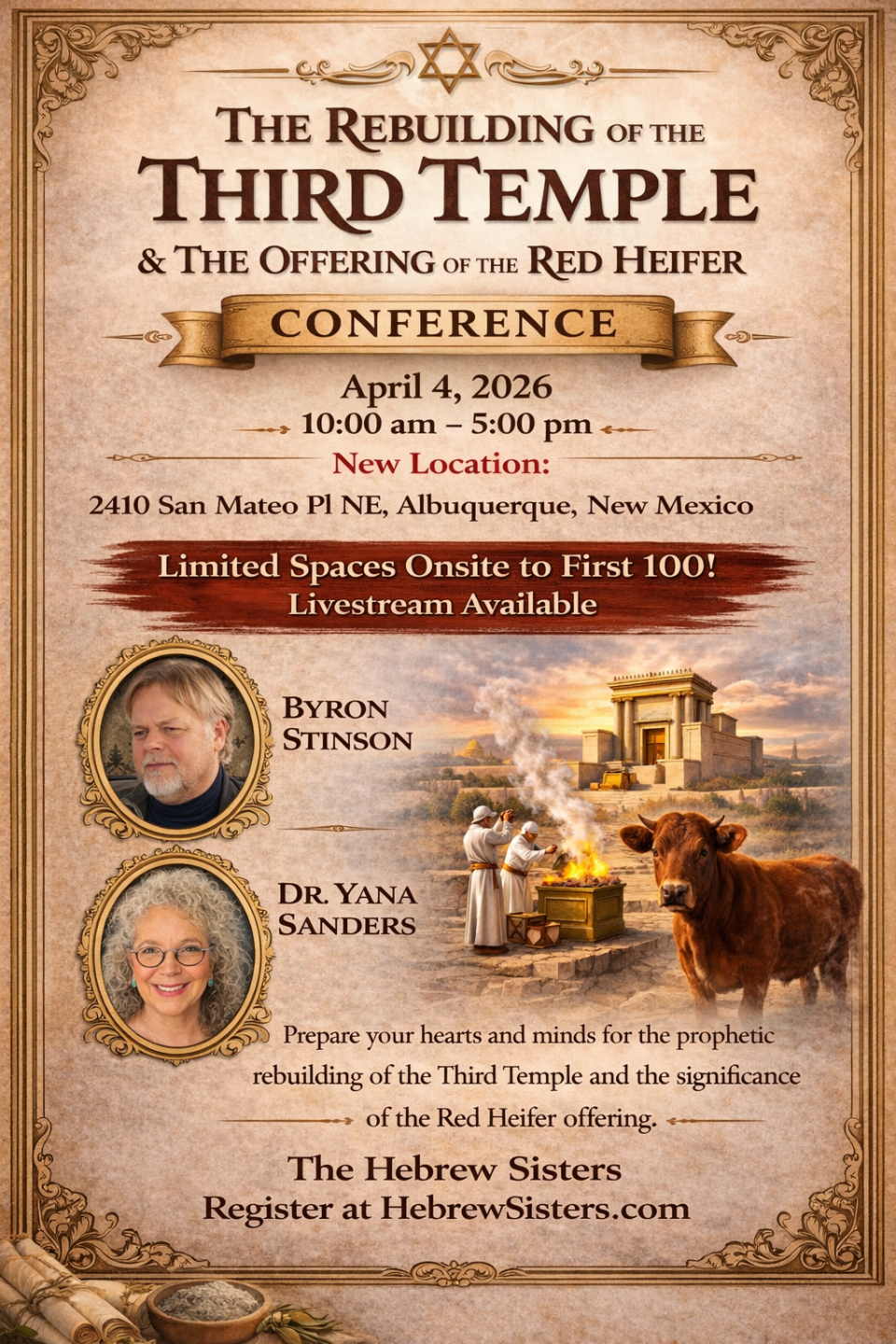 You are invited to attend a powerful one-day conference exploring one of the most compelling and prophetic subjects of our time:Â the rebuilding of the Third Temple in Jerusalem and the biblical significance of the red heifer.